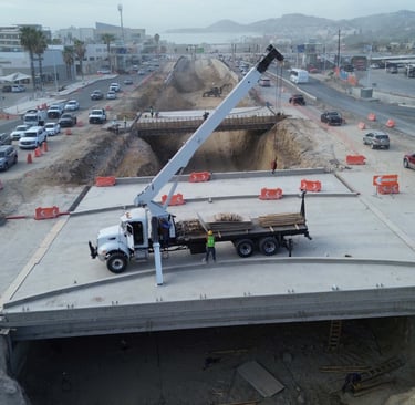 La intersección donde se despliega esta obra —km 30+300 de la carretera federal libre Cabo San Lucas–La Paz— ha sido históricamente un cuello de botella vial sometido a altos volúmenes de tráfico, tanto de residentes como de visitantes internacionales. La proyección de aforos del Instituto Mexicano del Transporte (IMT) considera un horizonte de 30 años para diseñar una infraestructura que sostenga un nivel de servicio “B”, que implica tiempos de espera reducidos y flujo vehicular continuo.